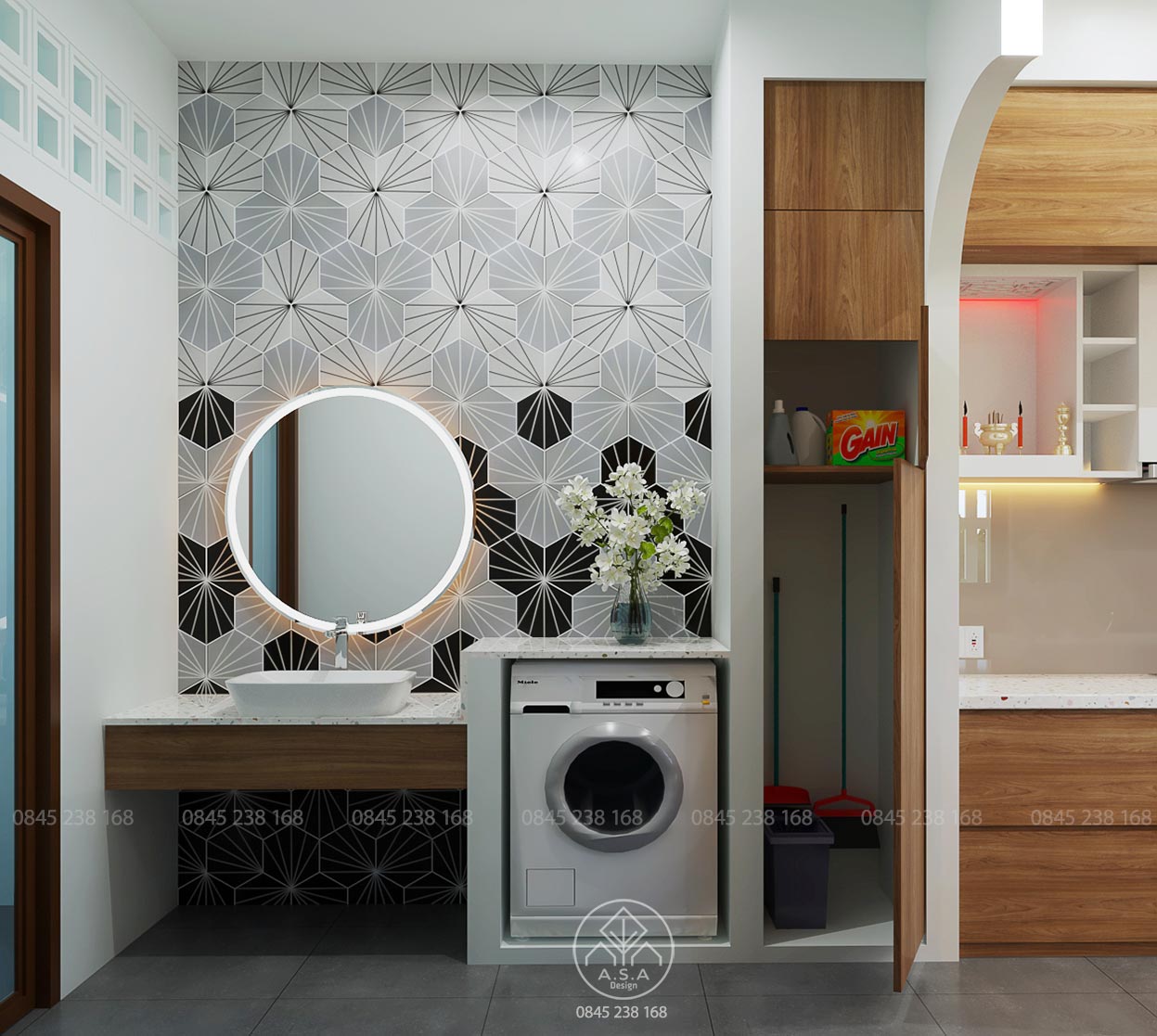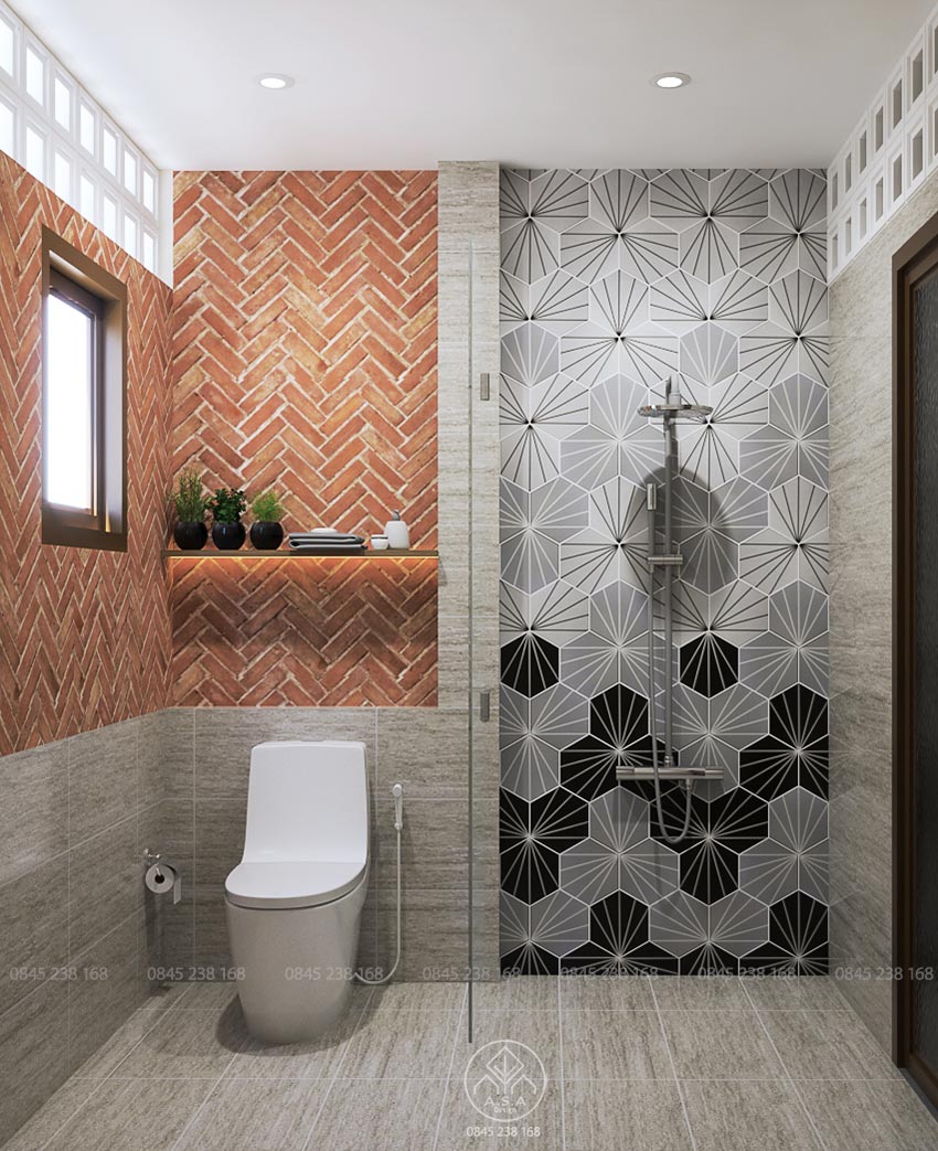 Kiến trúc hiện đại, thiết bị tiện nghi được kết hợp khéo léo bởi các vật liệu mộc mạc như tường bê tông, tường gạch cổ, gạch bông, đèn lồng tre… tạo nên không gian vừa phóng khoáng lại rất gần gũi thân quen đúng như tinh thần retro mà kiến trúc sư và chủ nhà đã thống nhất.